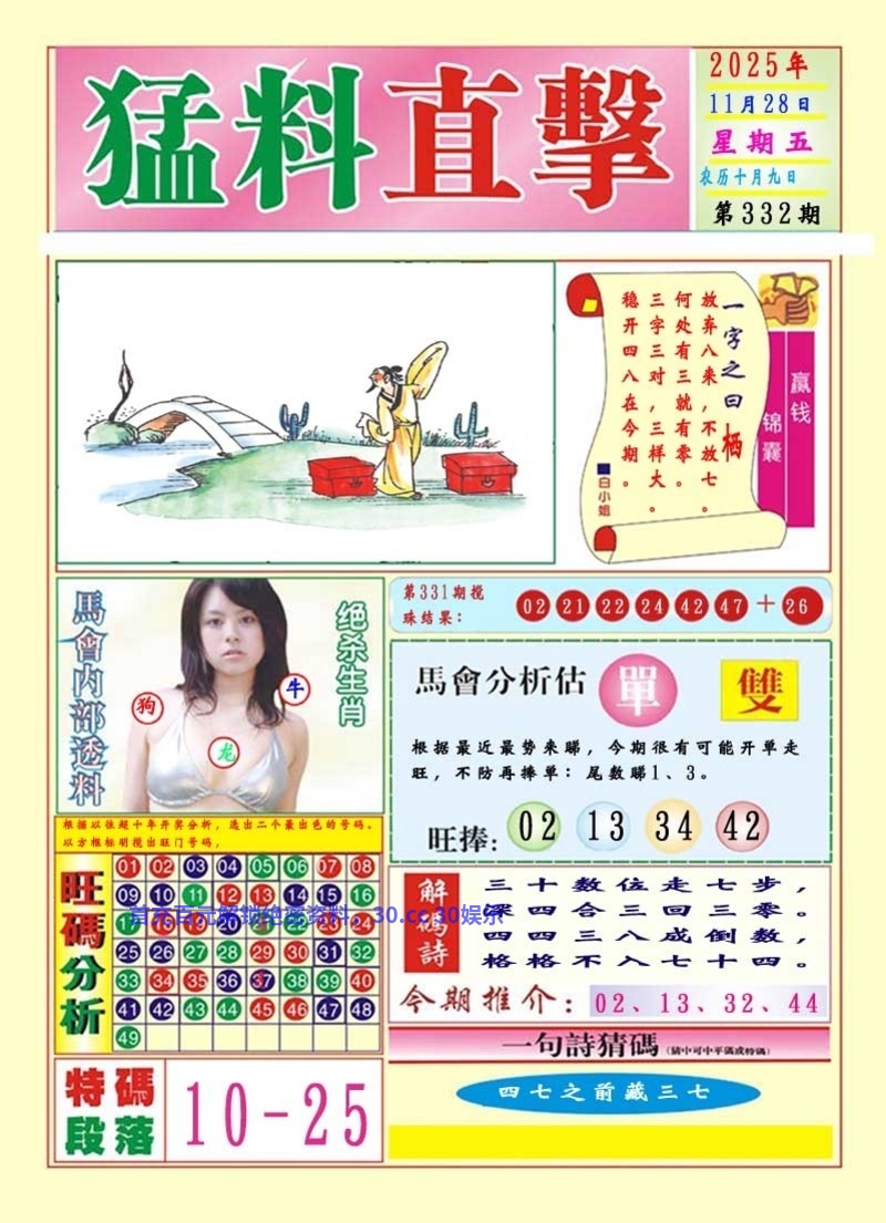 | 330期:天地+二肖〖天肖+羊鸡〗开:马36准 |